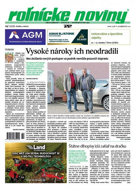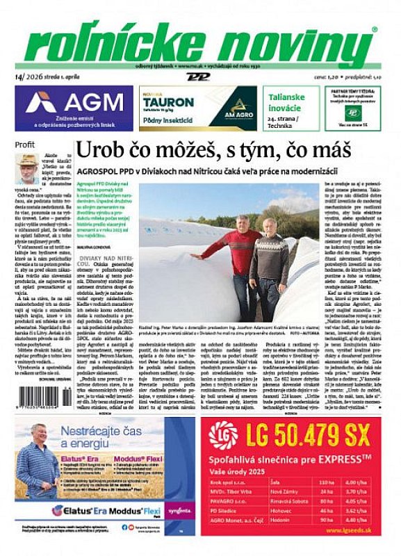 Roľnícke noviny jsou nepostradatelným zdrojem informací pro všechny, kteří chtějí mít přehled o dění v zemědělství a hledají spolehlivé a kvalitní zpravodajství.