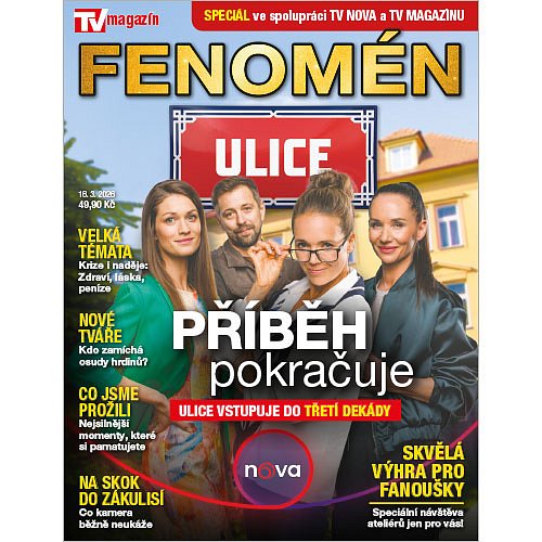 Předplaťte si nyní časopis Vlasta na čtvrt roku za akční cenu a získáte speciál TV magazínu 2026 – Ulice v hodnotě 49,90 Kč jako dárek. Nekonečný seriál Ulice loni oslavil dvacáté narozeniny, ale jeho slavná éra tím rozhodně nekončí. Pokračuje dál a stále více se snaží být odrazem reálného života se všemi aspekty, které moderní doba přináší. Milostné peripetie, zdravotní potíže i finanční otázky, trápení s dětmi nebo v zaměstnání, běžné starosti ve škole i doma, to vše hrdinové Ulice musejí řešit – stejně jako vy. Ulice je v tom totiž s vámi, a především pro vás! Pojďte si proto připomenout zásadní momenty oblíbeného seriálu. Umožníme vám nahlédnout do zákulisí a ukážeme i to, co běžně není vidět. Seznámíte se s novými hrdiny, oživíte si osudy těch stávajících a souběžně si užijete ochutnávku novinek, které se v Ulici chystají. V kvízech si navíc ověříte, zda jste ta léta sledovali seriál skutečně poctivě. Těšit se můžete na zajímavé postřehy tvůrců a rozhovory.
