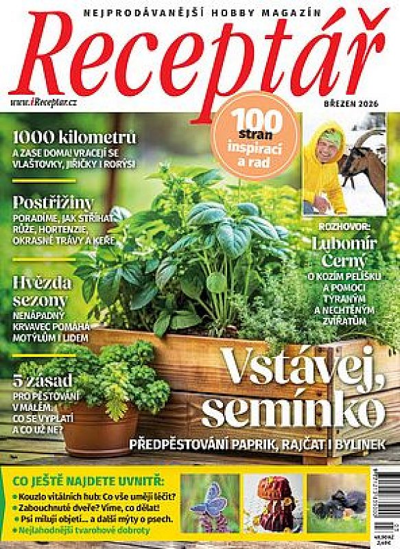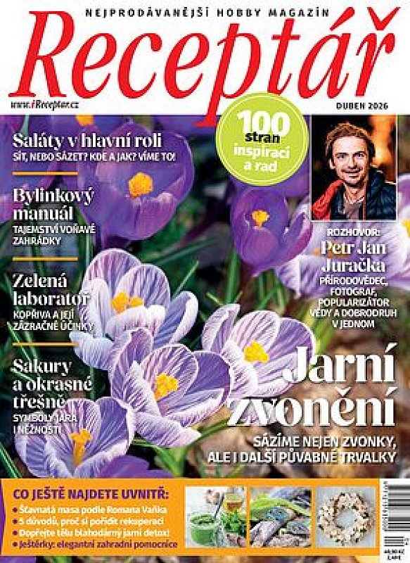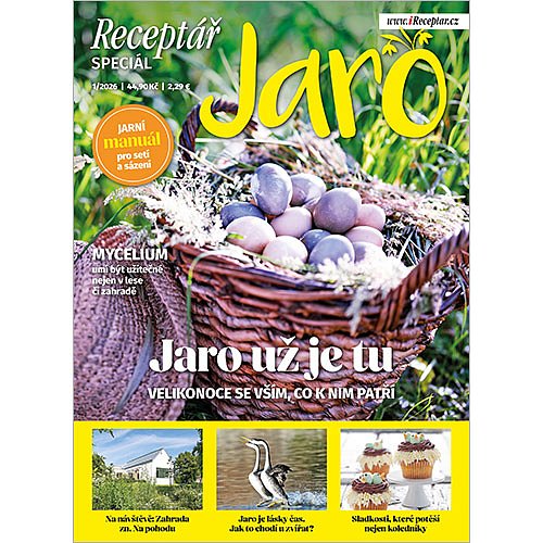 Předplaťte si nyní čqasopis Receptář na celý rok za akční cenu a získáte speciál Receptář Jaro 1/2026 v hodnotě 44,90 Kč jako dárek. Jaro už je tu – a s ním i nový speciál Jaro. Číslo plné svěží inspirace vás provede obdobím nových začátků – na zahradě, v kuchyni i v přírodě kolem nás. Přináší praktický jarní manuál pro setí a sázení, tipy, jak probudit zahradu k životu, i návštěvu zahrady, která vznikla s respektem k místu a krajině. Nahlédnete do tajemného světa mycelia, objevíte kouzlo vrb a dozvíte se, jak jaro prožívají zvířata. Nechybí velikonoční inspirace – od tradičních symbolů a receptů až po sladkosti, které potěší koledníky i celou rodinu. Začtěte se do speciálu Jaro a nechte se unést kouzelnou energií probouzející se přírody.