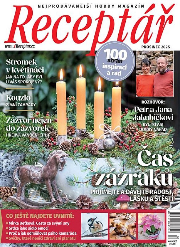 Předplaťte si nyní časopis Receptář + Speciál Receptář na celý rok a získáte kompletní ročník Receptáře 2025 i se Speciály v celkové hodnotě 758 Kč jako dárek. Kompletní ročník časopisu Receptář 2025 – 12 čísel + 4 speciály (jaro – Velikonoce, léto, podzim, zima – Vánoce). Neváhejte a objednávejte ihned. Nabídka platí jen do vyčerpání zásob.